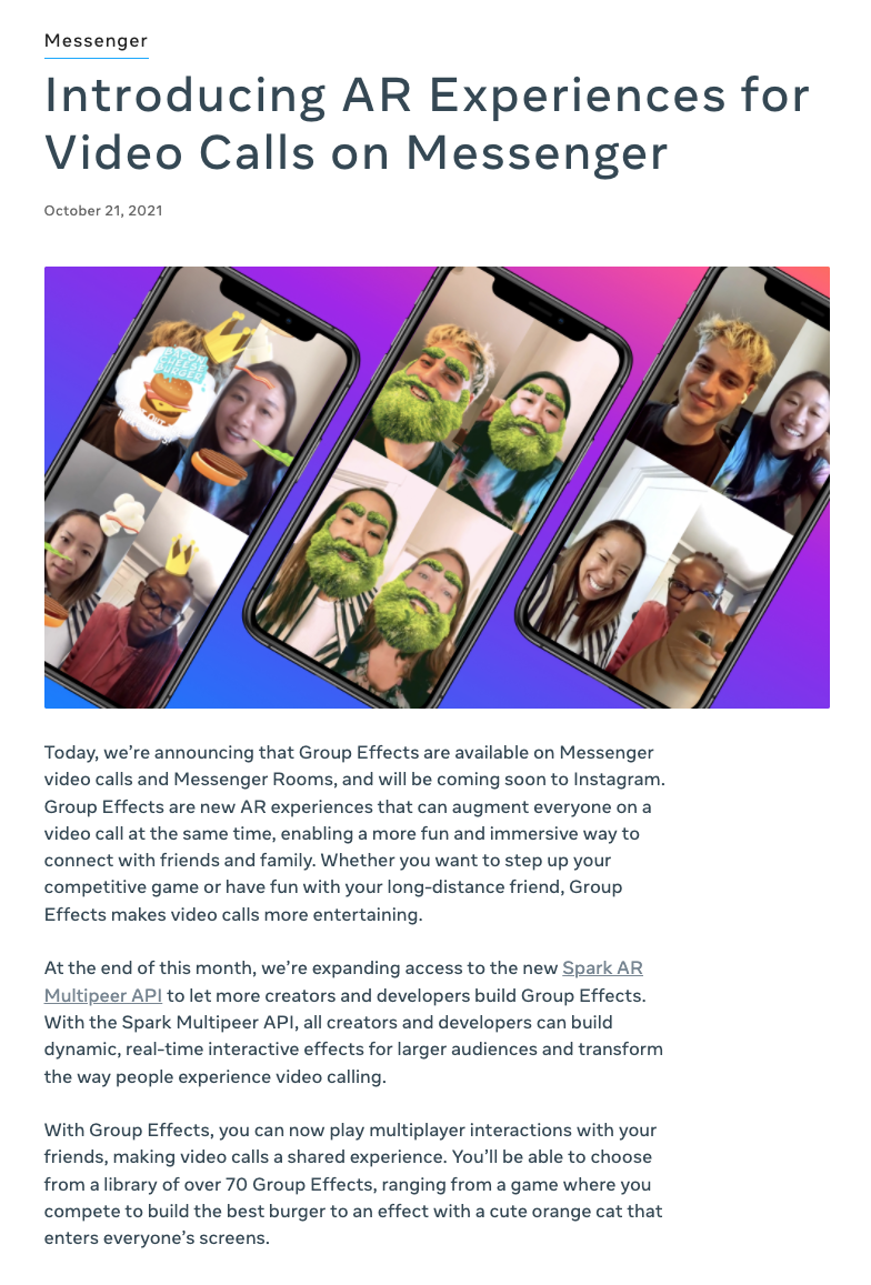 I spearheaded the design & launch of industry-first XR/AR features for billions on Instagram, Messenger, Facebook, and WhatsApp, driving double-digit growth in consumer AR engagement and nurturing a vibrant 3P creator ecosystem.